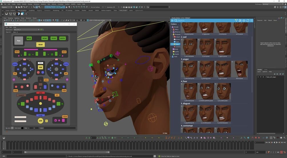 Pose Library includes appealing expressions, mouthshapes for lipsync, eyes, hands, random body poses and a few cycles. It's a standard tool in feature film productions to animate faster and stay on model.